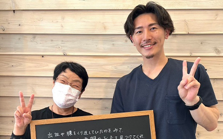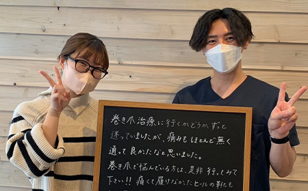 施術も優しく丁寧に行っていただき、とても助かりました。ありがとうございました!