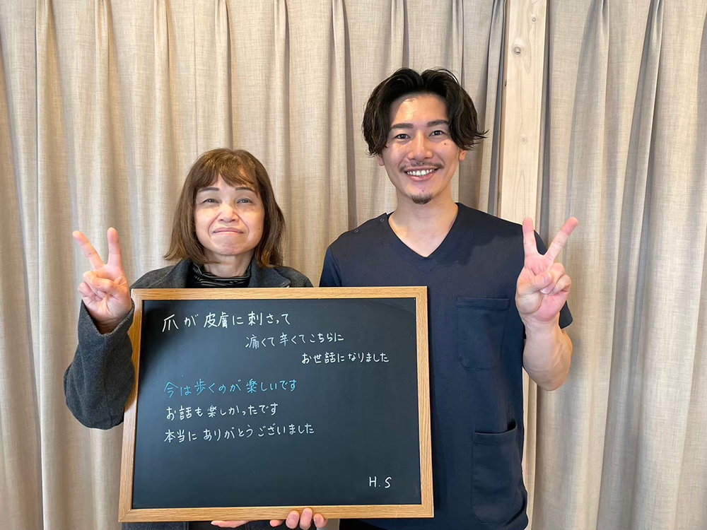 歩くだけでズキズキしていた巻き爪。初めての治療は緊張したけど全然痛くなくて安心しました。