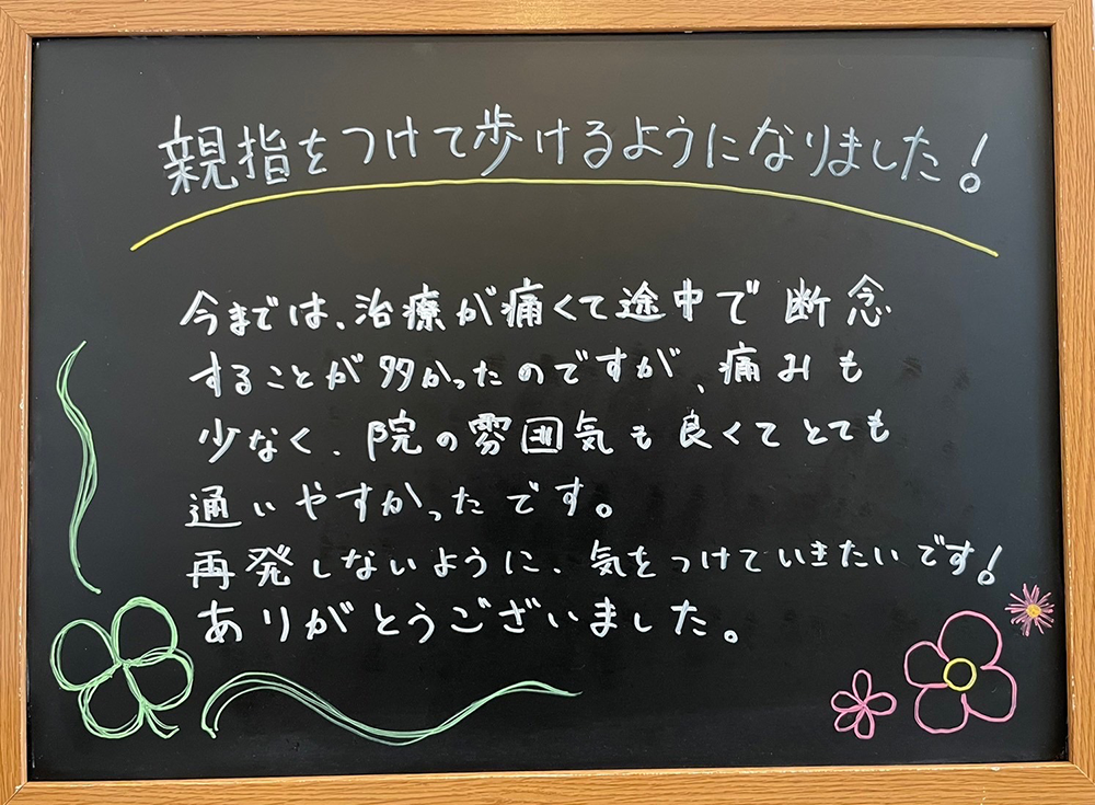 初めての治療から地面に親指を着いて歩ける喜びを知りました。